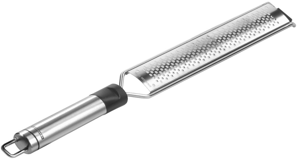 Nesvarbu, ar tai būtų elegantiškas aksesuaras ant stalo, ar virtuvėje ruošiamas maistas: „Leifheit“ smulki „MicroCut S“ tarka paperka savo išvaizda ir itin aštriais ašmenimis, kurie šokoladą, citriną, svogūną ir sūrį pjausto, o ne tiesiog plėšo kaip įprastos tarka. Tai išsaugo aromatus, o visas skonis atsiskleidžia valgant, o ne pjaustant. Ašmenų apsauga užtikrina saugų laikymą. Ilga, siaura rankena leidžia ypač patogiai suimti. Galima plauti indaplovėje.