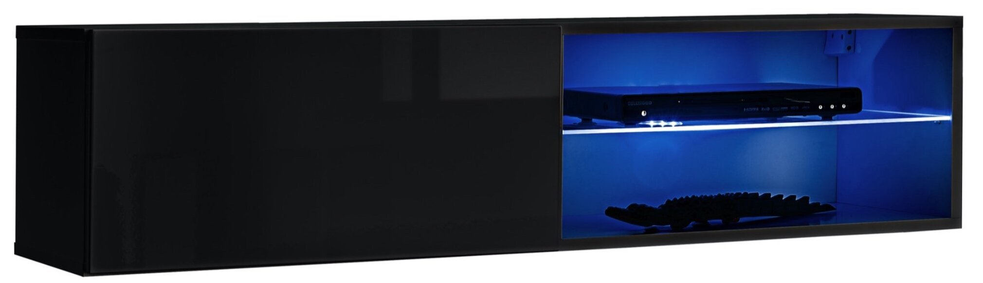 Dešinėje - sklendė su stumdomu-spustelėjimu atidarymo sistema, paremta hidrauliniais siurbliais, už jos - viena kamera. Dešinėje - atvira kamera su viena stiklo lentyna ir mėlyna LED šviesa. Galimybė montuoti duris abiejose pusėse.