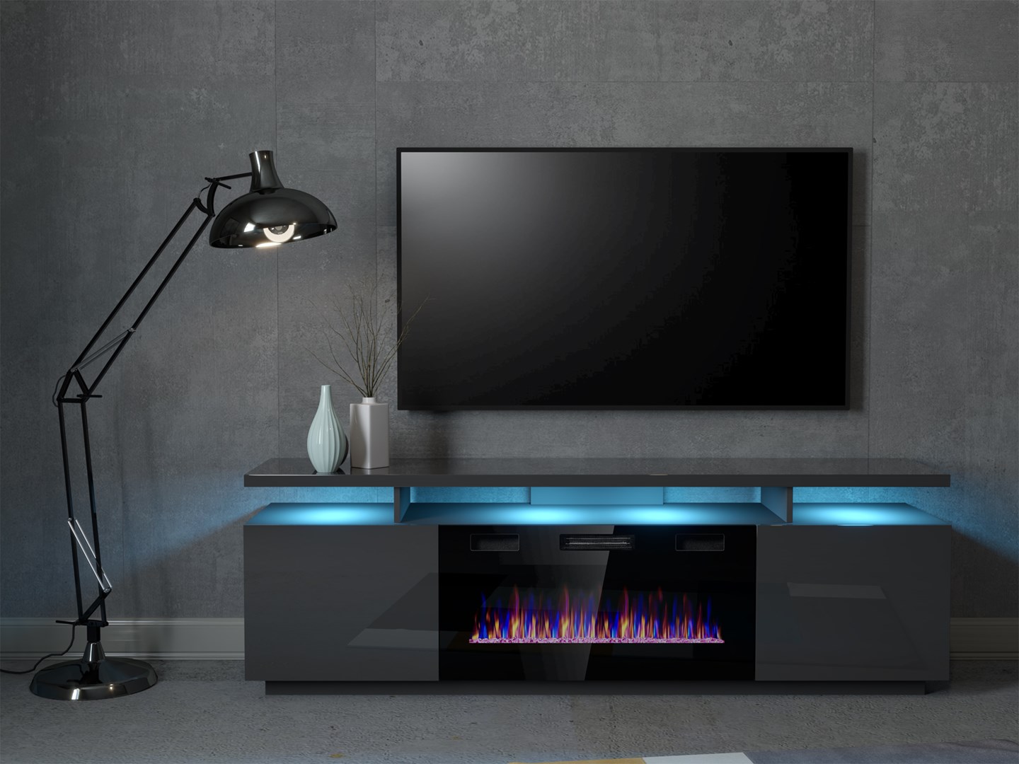 Televizoriaus spintelė Cama Meble Abi 4D, juodas, 200 cm x 38 cm x 62 cm