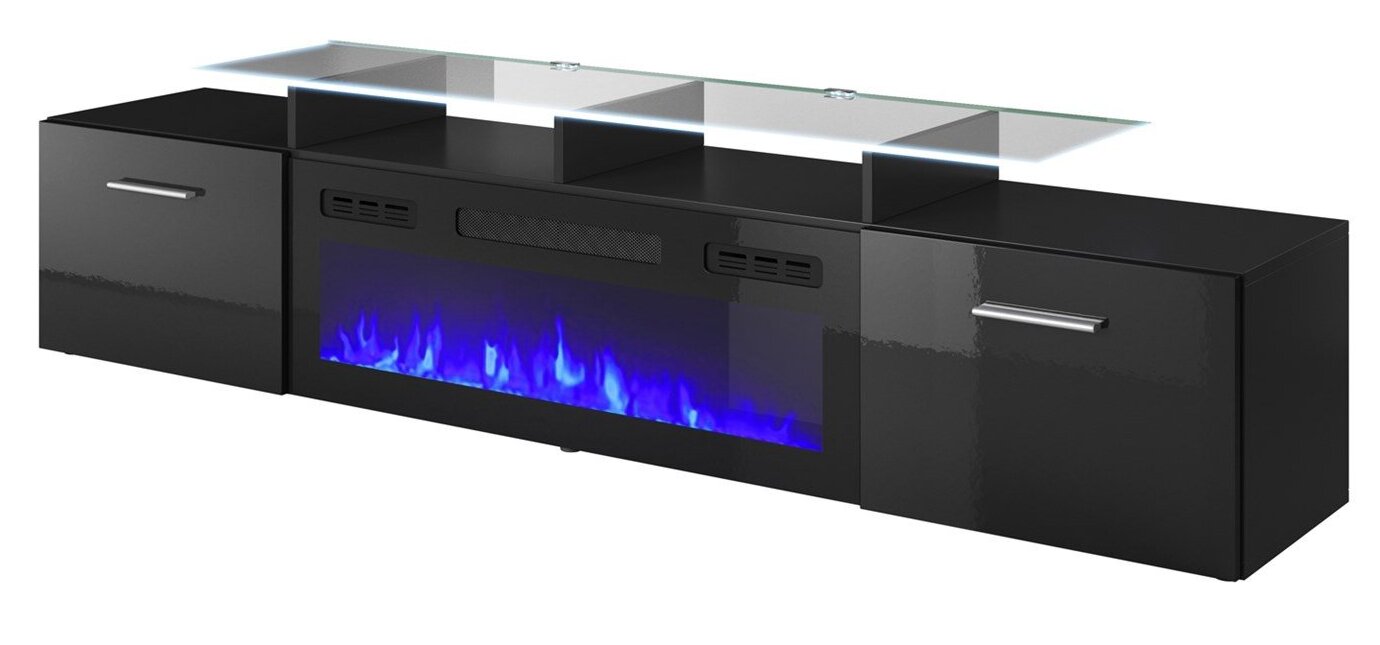 TV staliukas Cama Meble Rova, juodas, 190 cm x 37 cm x 48 cm