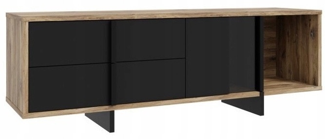 Komoda Forte Jokkaz JKZK221L-M559, ąžuolo/juoda, 42 cm x 159.6 cm x 85.7 cm