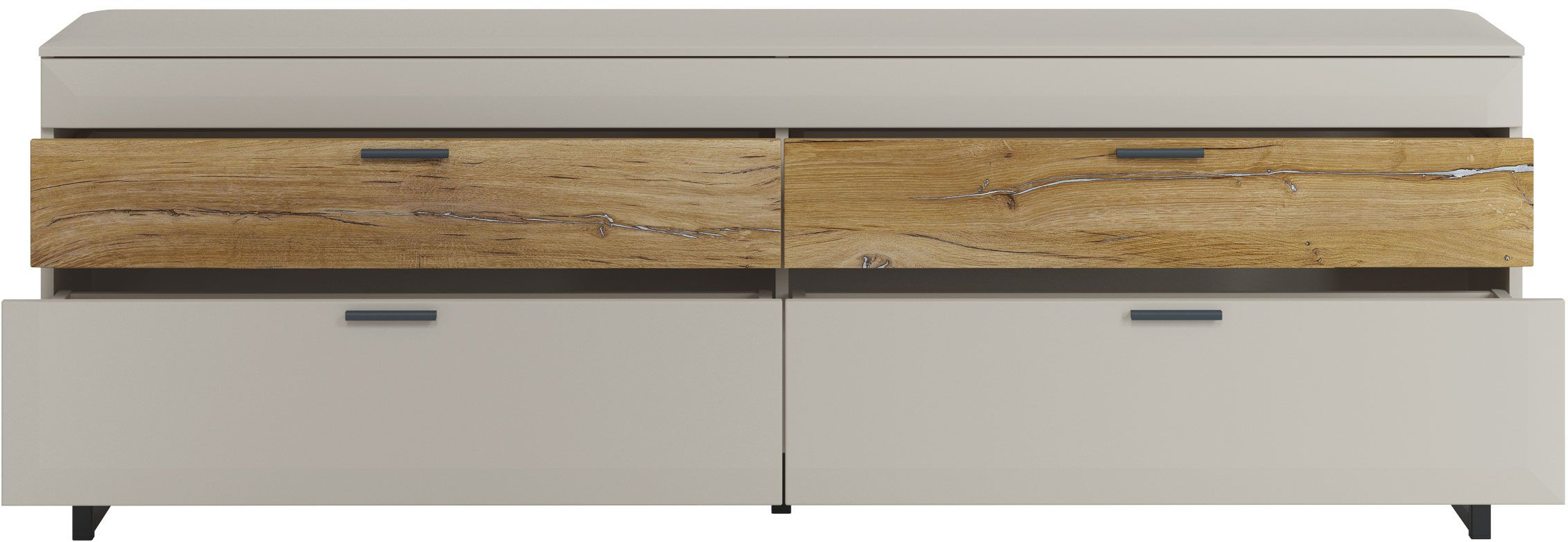 Televizoriaus spintelė Cama Meble Abi 4D, juodas, 200 cm x 38 cm x 62 cm