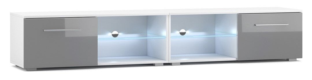 TV staliukas Moon Double, baltas/pilkas, 200 cm x 40 cm x 36 cm