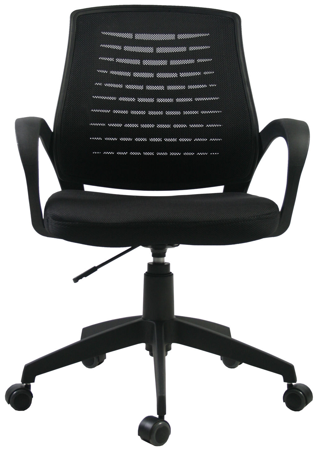 BRESCIA biuro kėdė pasižymi juodos spalvos poliesterio tinklelio sėdyne (Martindale testas 30 000) ir atlošu, kuriuos papildo juodas rėmas.