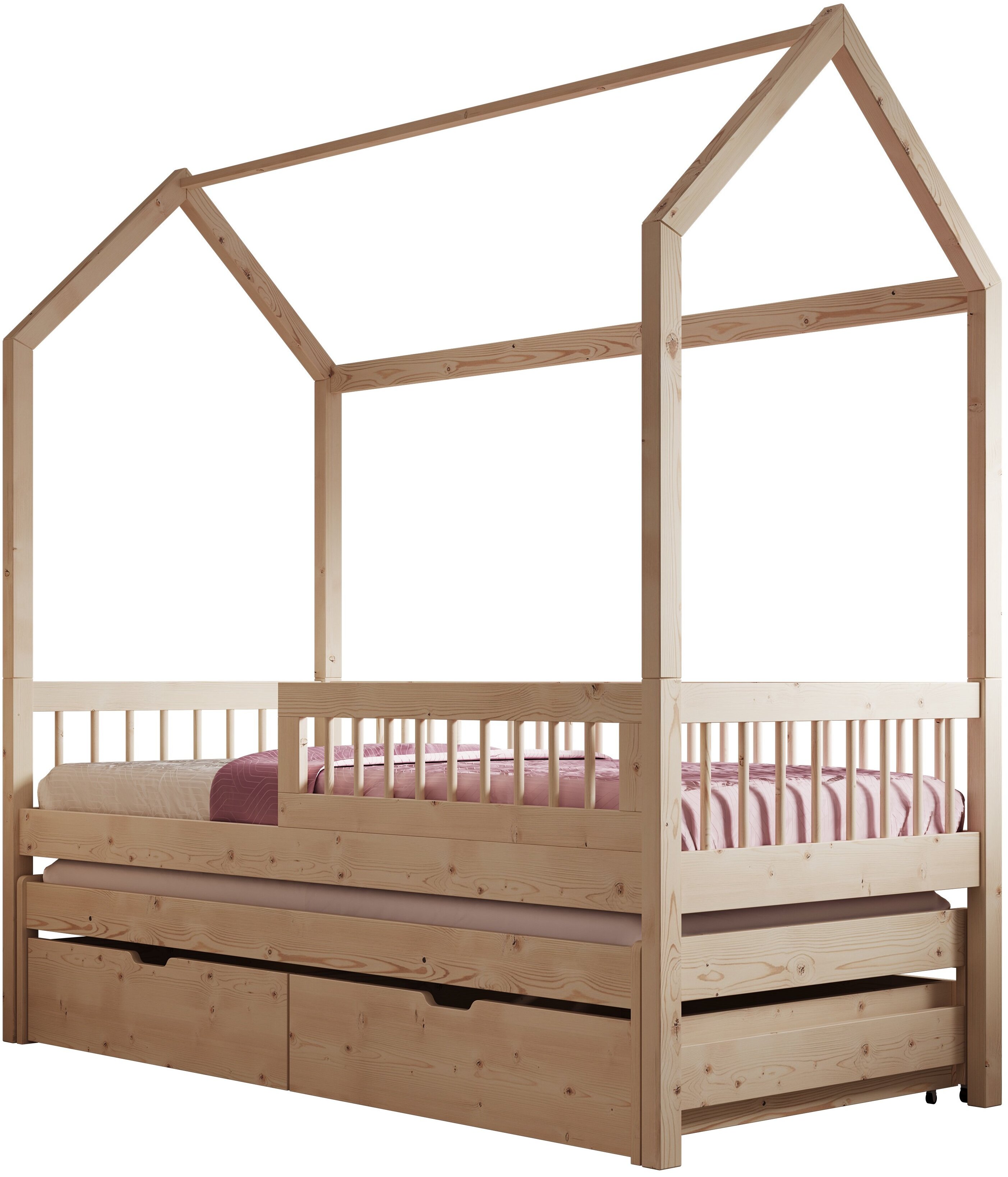 Vaikiška lova viengulė ADRK Artes II House, pušies, 80 x 180 cm, su patalynės dėže, su čiužiniu