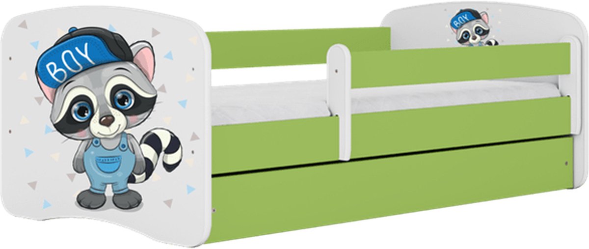 Vaikiška lova viengulė Kocot Kids Babydreams Raccoon, balta/žalia, 80 x 160 cm, be patalynės dėžės, be čiužinio