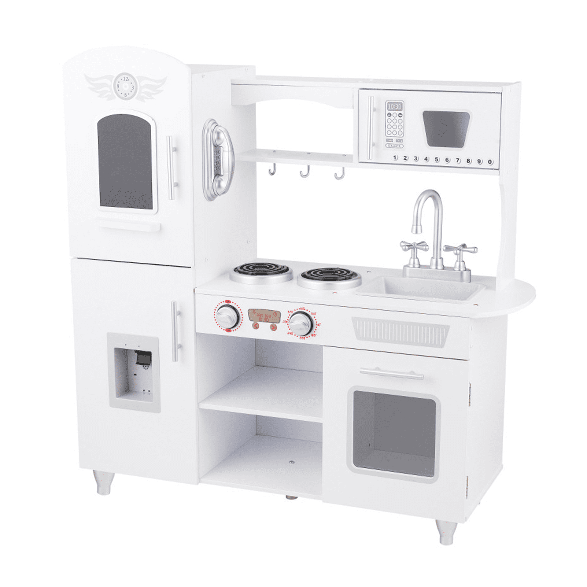 Kiekvieno mažojo virtuvės šeimininko svajonė! Durelės varstosi, rankenėlės sukinėjasi, kabliukai mentelėms kabinti ir dar daugelis kitų virtuvės įregimų padės vaikui lavinti fantaziją, skatins kūrybiškumą bei padės susipažinti su pasauliu. Leiskite savo vaikui pagaminti įspūdingus pirmuosius patiekalus šaunioje virtuvėlėje. Baltos spalvos virtuvėlė su sidabro detalėmis taps tikra kambario puošmena bei smagiausia vieta žaidimams. Visi elementai nudažyti vaikams ir aplinkai nekenksmingais dažais.