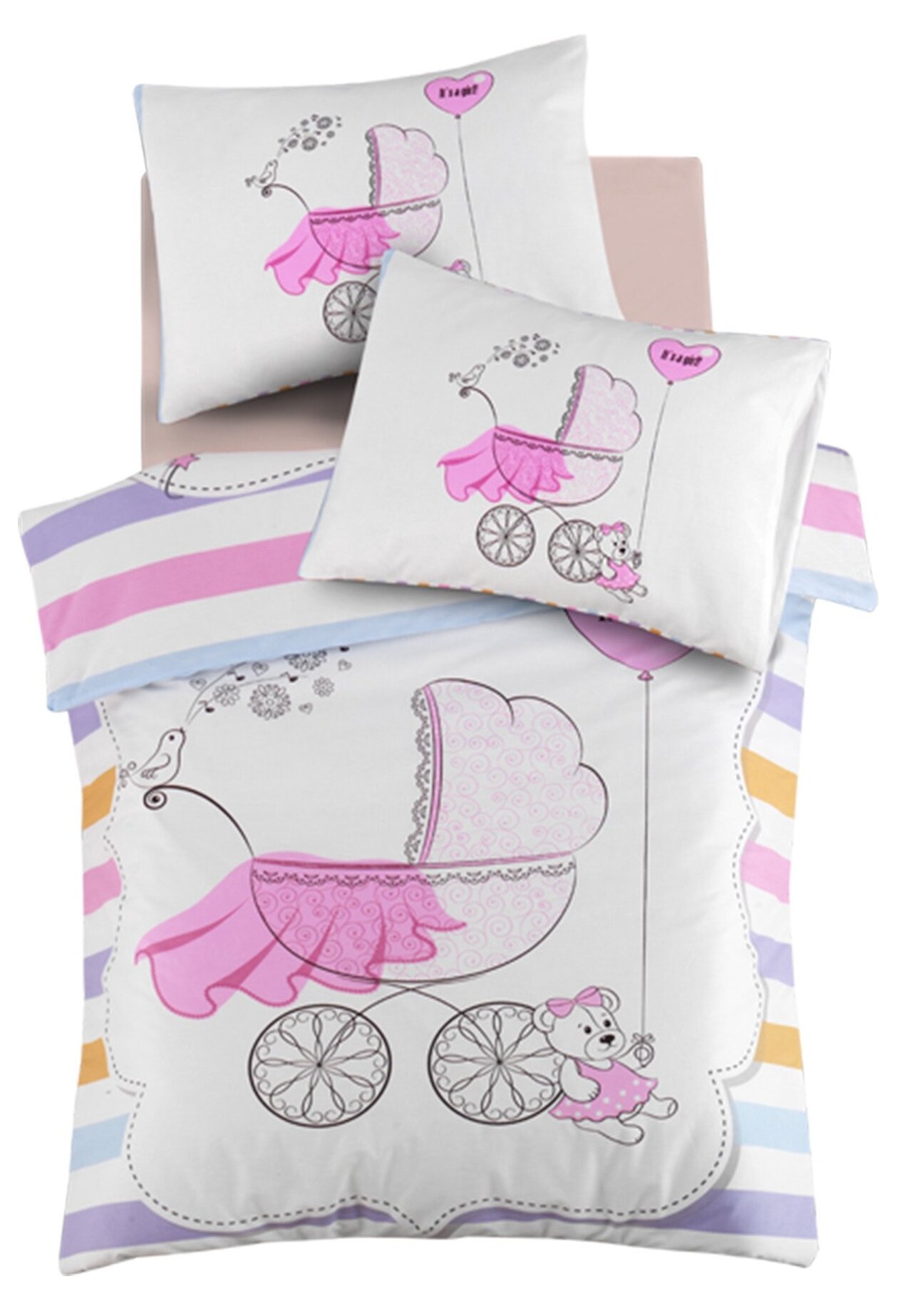 Vaikiškas patalynės užvalkalų komplektas Mijolnir Ranforce Baby Quilt Girl 170PTK2018, įvairių spalvų, 100 x 150 cm | Interjeras, baldai, tekstilė | Senukai.lt | 2