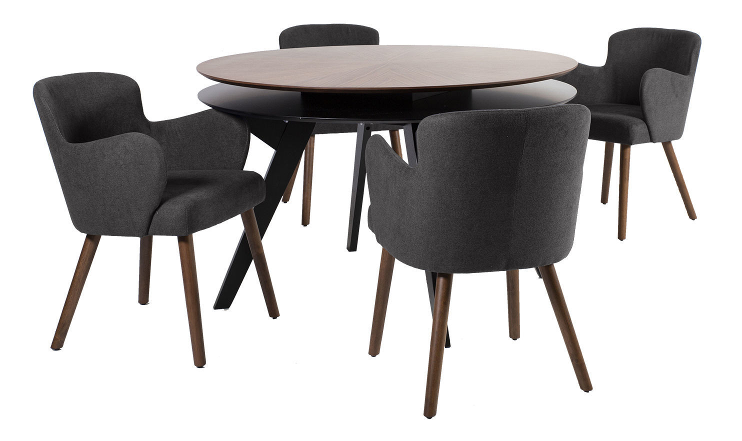 Dviejų lygių stalviršis: viršutinis paviršius 18 mm MDF, graikinių riešutų fanera, apatinė dalis 15 mm juoda MDF. Didžiausias kėdės naudotojo svoris: 100 kg