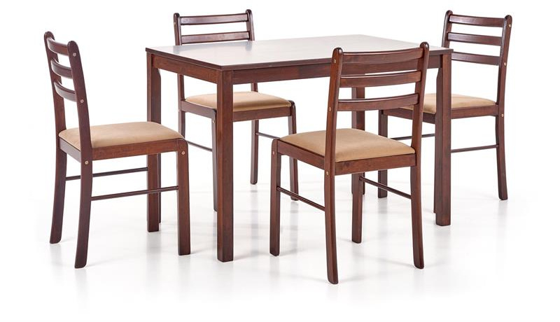 Šiame komplekte esančios kėdės turi apmuštas sėdynes, kad būtų patogiau. Komplektas yra espreso spalvos.
