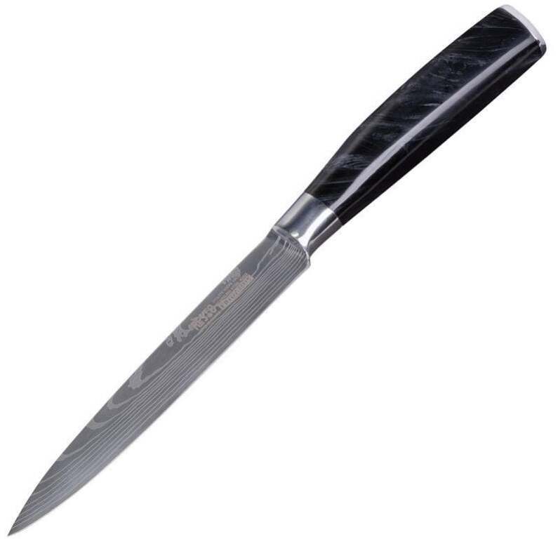 Unikalus lazerinis Damasko lipdukas ir specialiai suprojektuota rankena su juodu marmuru yra būtent tokie peilio aprašymai, kurių jums nereikėjo, kol nepradėjote jų naudoti gyvenime. Jie ne tik akivaizdžiai įkvepia prabangos aurą, bet ir sujungia moderniąsias technologijas su senoviniu Damasko plieno kalimo būdu. Tai savo ruožtu perkelia senovės virimo praktiką, kurią visi dalijamės su savo protėviais, tiesiai į jūsų šiuolaikinę virtuvę, su visais patogumais ir technologijomis, leidžiančiomis naudoti kulinarinio verslo pažangą.