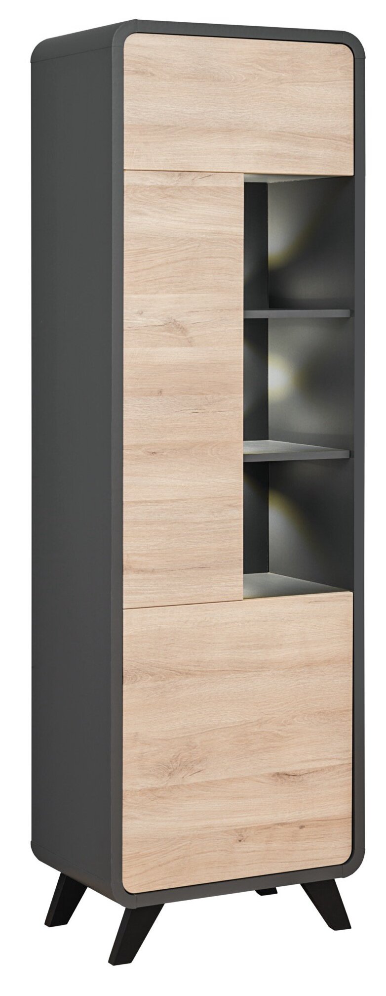 Vitrina ASM Round Round, antracito/medžio, 60 cm x 40 cm x 192 cm