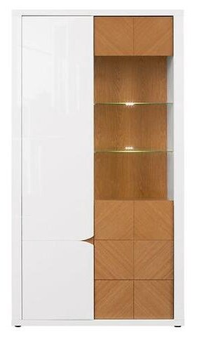 Vitrina Forn S471-REG1D1W-DDC/BIP, ąžuolo/balta, 64 cm x 42.5 cm x 200.5 cm