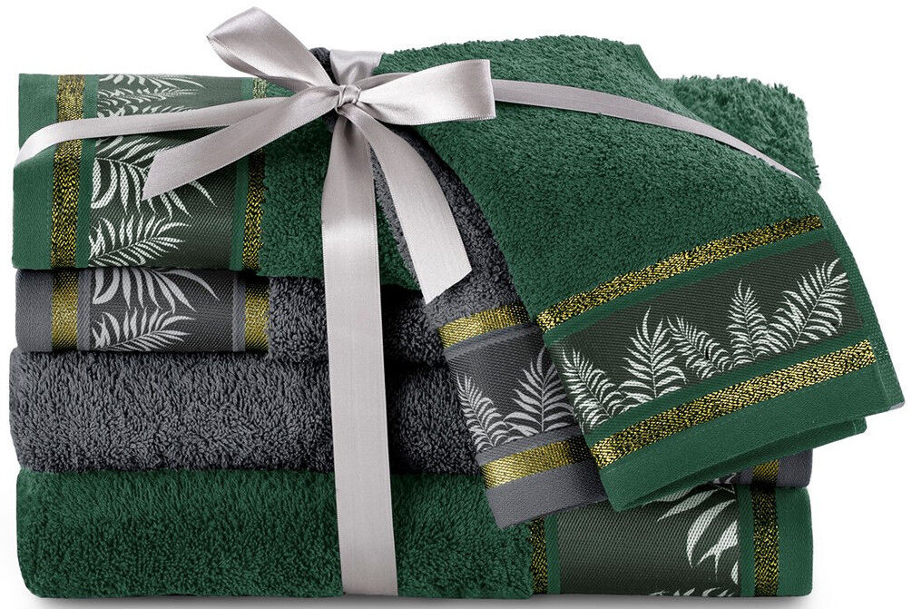 Vonios rankšluosčių rinkinys AmeliaHome Pavos, žalias/pilkas, 140 cm x 70 cm, 6 vnt.