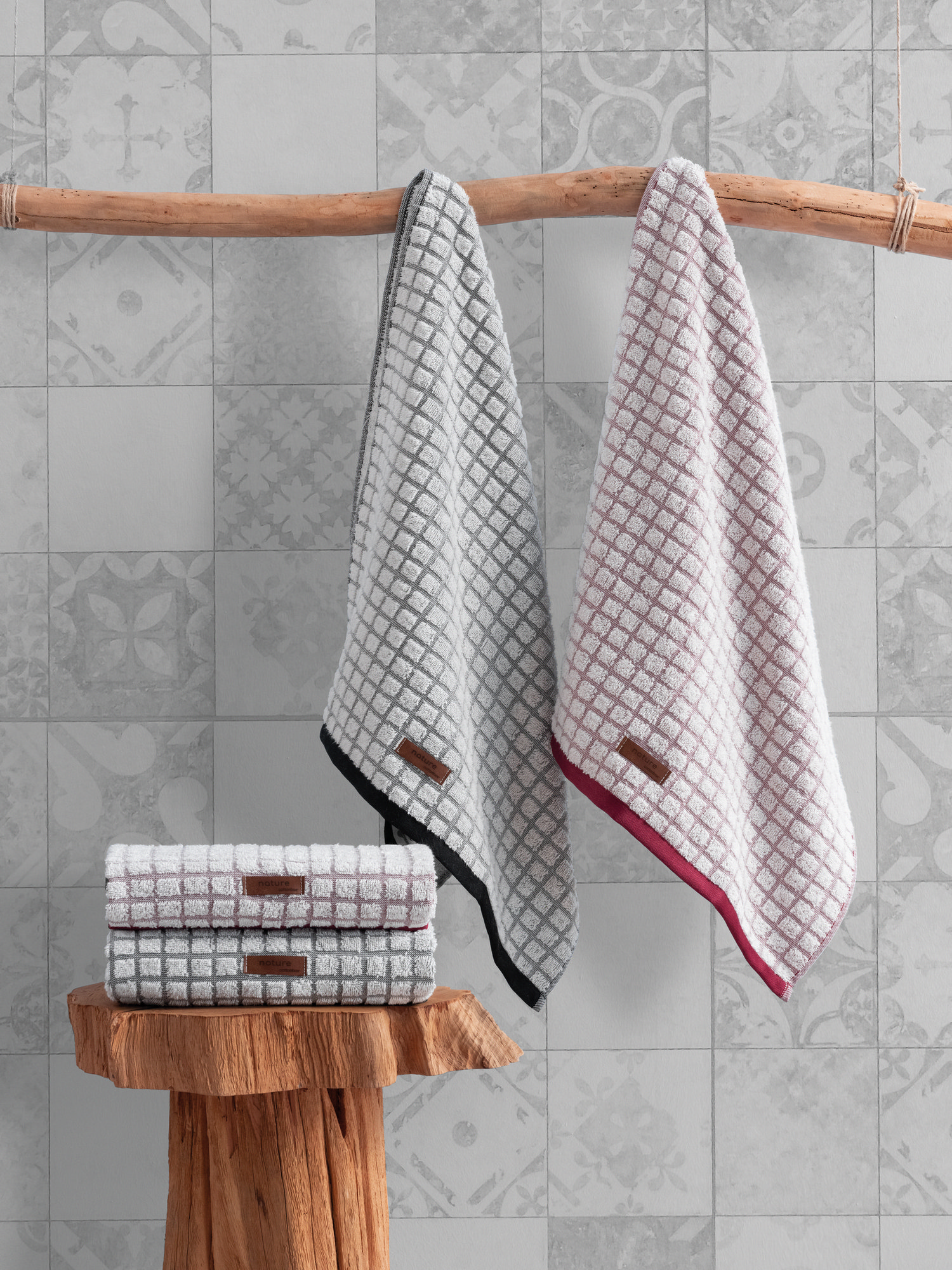 Vonios rankšluosčių rinkinys Foutastic Nature 338CTN1216, baltas/juodas/rožinis, 90 cm x 50 cm, 4 vnt.