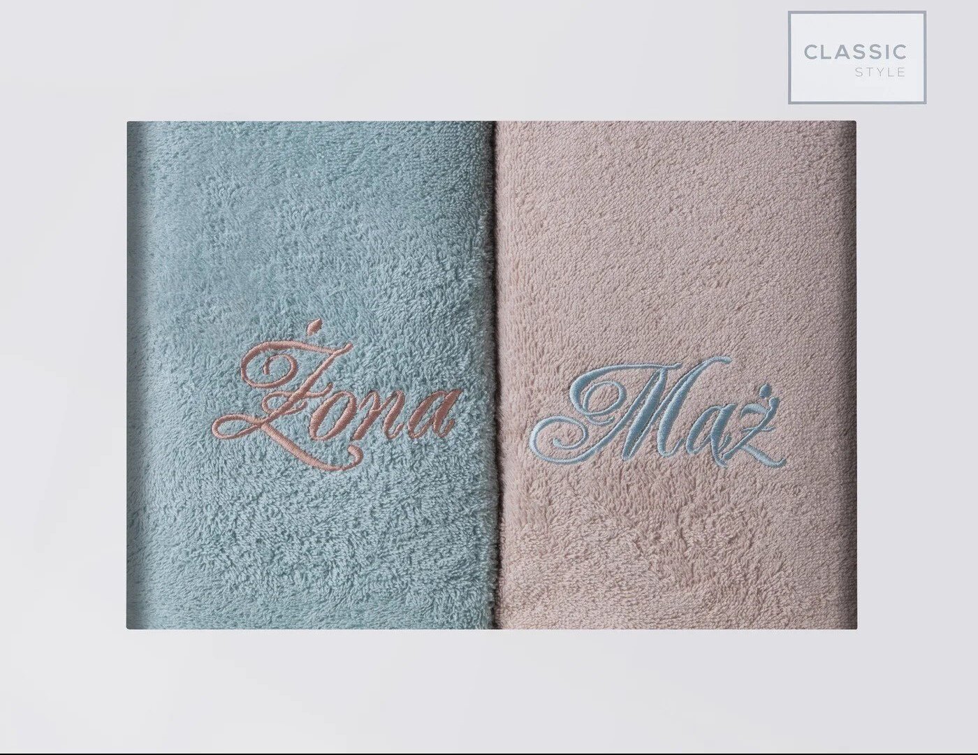 Are you looking for an idea for a unique gift for a young couple? Or maybe you want to celebrate your wedding anniversary? Our personalized set of towels in contrasting colors decorated with embroidered inscriptions WIFE and HUSBAND is a great idea for a practical and beautiful gift for a couple on any occasion. The towels are made of 100% soft and absorbent cotton, pleasant to the touch and very durable. High quality towels and aesthetic embroidery will make them a unique souvenir for many years. The set is packed in an aesthetic cardboard package , perfect for a gift.
