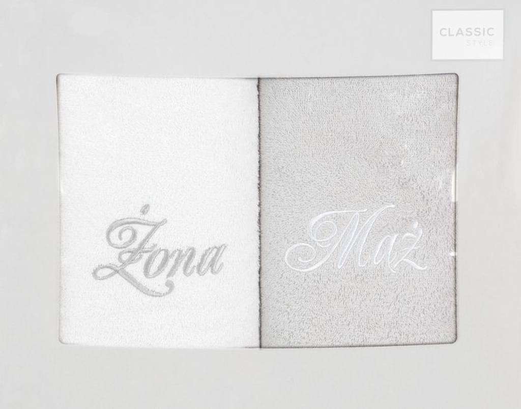 Vonios rankšluosčių rinkinys Husband/ Wife RH-06, baltas/sidabro, 140 cm x 70 cm, 2 vnt.