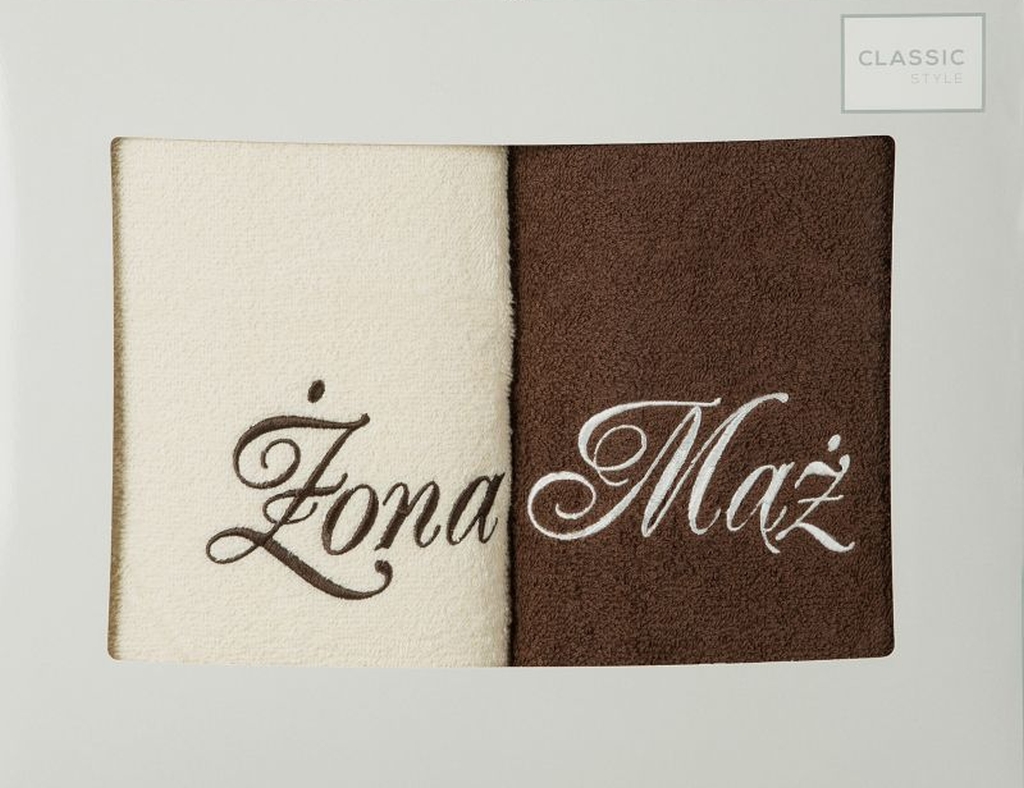 The towels are made of refined cotton, called combed, with a grammage of 400g/m2. They absorb water perfectly from the first use. A very important feature is that the towels become fluffier with use, and the embroidery on them is dense and durable. The set is very effectively packed in a box. High quality and very competitive price. Perfect for your own interior design or as a gift! The photo shows the appearance of the towels, but please remember that each computer displays colors according to its own settings and properties. Dimensional tolerance +/-3%. Wash before first use. Washing instructions on the label.