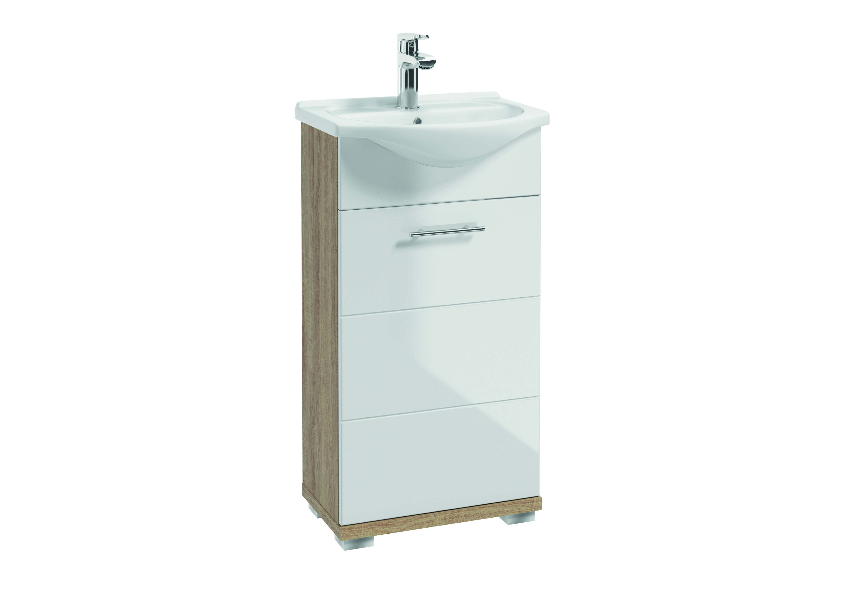 Vonios spintelė su praustuvu Deftrans Stilla D80 + Plan 80, ąžuolo/balta, 45 cm x 80 cm x 60 cm