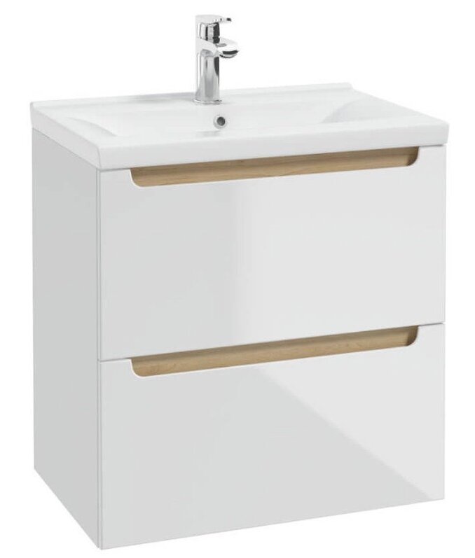 Prie sienos tvirtinamas Stilla praustuvo spintelė D60 su dviem stalčiais, aprūpintais švelnaus uždarymo sistema. Metalinės stalčių sienelės ne tik sustiprina konstrukciją ir padidina estetinę vertę, bet ir leidžia lengvai prižiūrėti. Visiškai ištraukiami bėgeliai leidžia lengvai pasiekti kiekvieną stalčių kampelį. Ir spintelės priekis, ir korpusas yra padengti aukštos kokybės UV laku, todėl gaminys yra patvaresnis. Subtilus dekoratyvinis skydelis, matomas už švelniai frezuotos rankenos, atkreipia dėmesį ir suteikia gaminiui unikalumo. Prie spintelės pridedami maskuojantys skydeliai trijų dekorų: baltos blizgios, juodos audros ir trumų buko, kurie leidžia papildomai suasmeninti spinteles, kad jos geriausiai atitiktų vonios kambario interjerą. Bet kuri iš šių parinkčių gali suteikti subtilią asmeninę aurą jūsų unikaliai suprojektuotai erdvei.