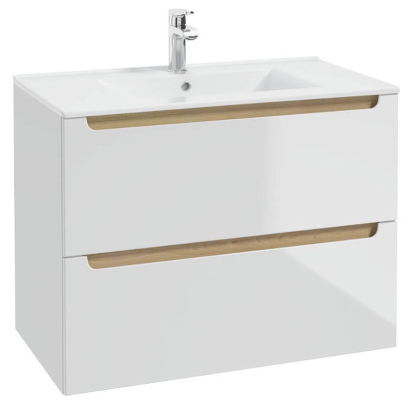 Vonios spintelė Deftrans Stilla E80 LED, ąžuolo/balta, 20 cm x 80 cm x 60 cm