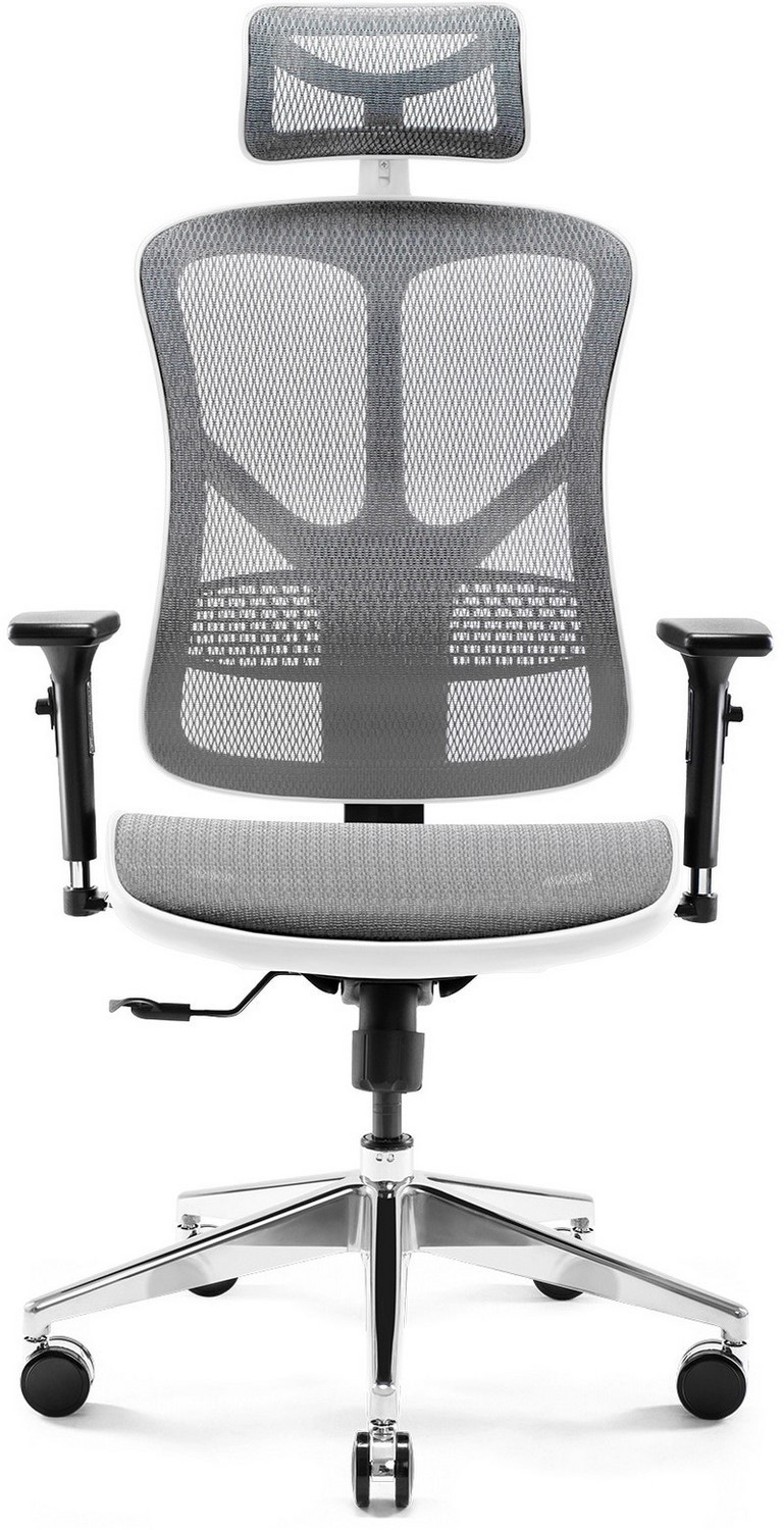 Diablo V-Basic White-Grey biuro kėdės dizainas buvo sukurtas žmonėms, kurie dirba sėdimą darbą. Dėl to kėdė turi profiliuotą sėdynę ir atlošą, kurie palengvina teisingos laikysenos palaikymą prie kompiuterio. Galvos atlošas leidžia patogiai atremti galvą, neperkraunant kaklo raumenų. Porankiai suteikia atramą alkūnėms ir riešams.