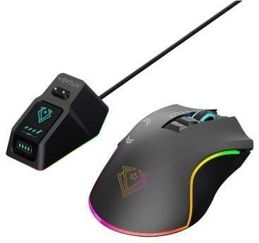 Vertux Mustang turi didelės spartos jutiklį, savaitinę autonomiją, laidinį ir belaidį įkrovimą, LED indikatorius, foninio apšvietimo nustatymus ir makrokomandų kūrimą.
