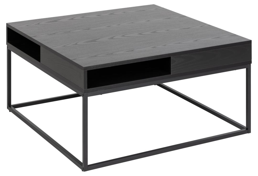 Willford kvadratinis kavos staliukas turi stalviršį, pagamintą iš juodos uosio šiurkščios melamino, ir pagrindą, pagamintą iš matinės juodos šiurkščios milteliniu būdu dengto plieno.